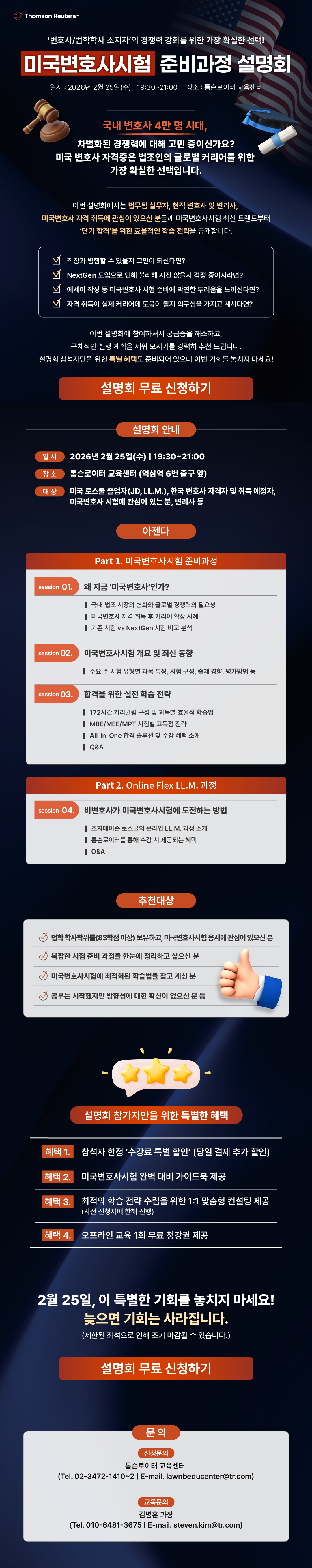 미국변호사 준비과정 공개설명회 / 2월 25일 (수) 19:30~21:00