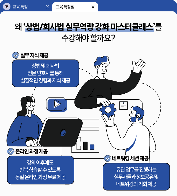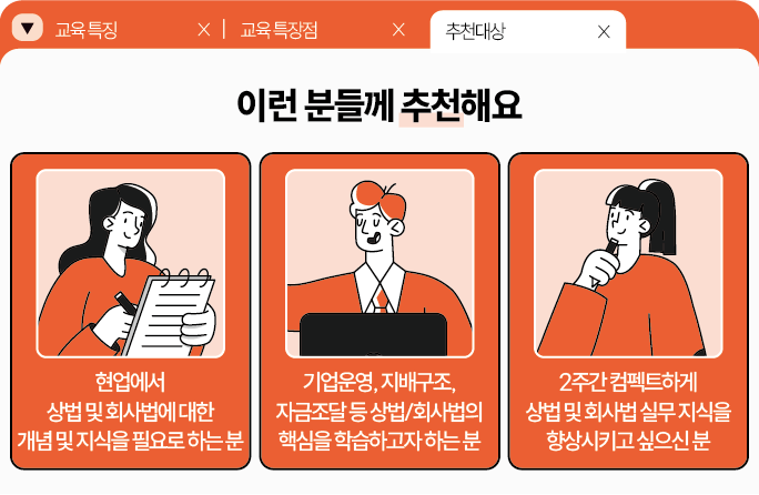 • 통합적인 이해를 돕는 커리큘럼: 상법뿐만 아니라 자본시장법, 전자증권법 등 유관 법령을 유기적으로 연계하여 학습